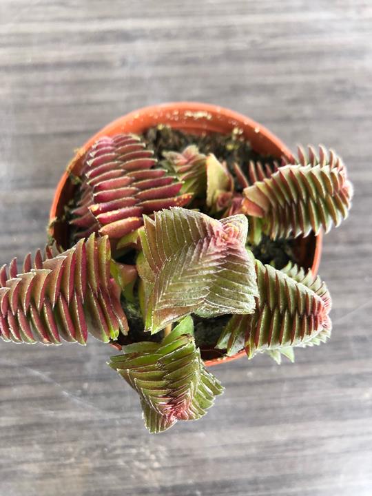 Crassula Capitella Thyrsiflora est connue pour être une superbe succulente. Au fur et à mesure que la plante mûrit, vous pouvez vous attendre à ce qu'elle atteigne jusqu'à 20 cm (8″) de hauteur. La principale caractéristique de la plante est le feuillage accordéon vert bordé de rouge.